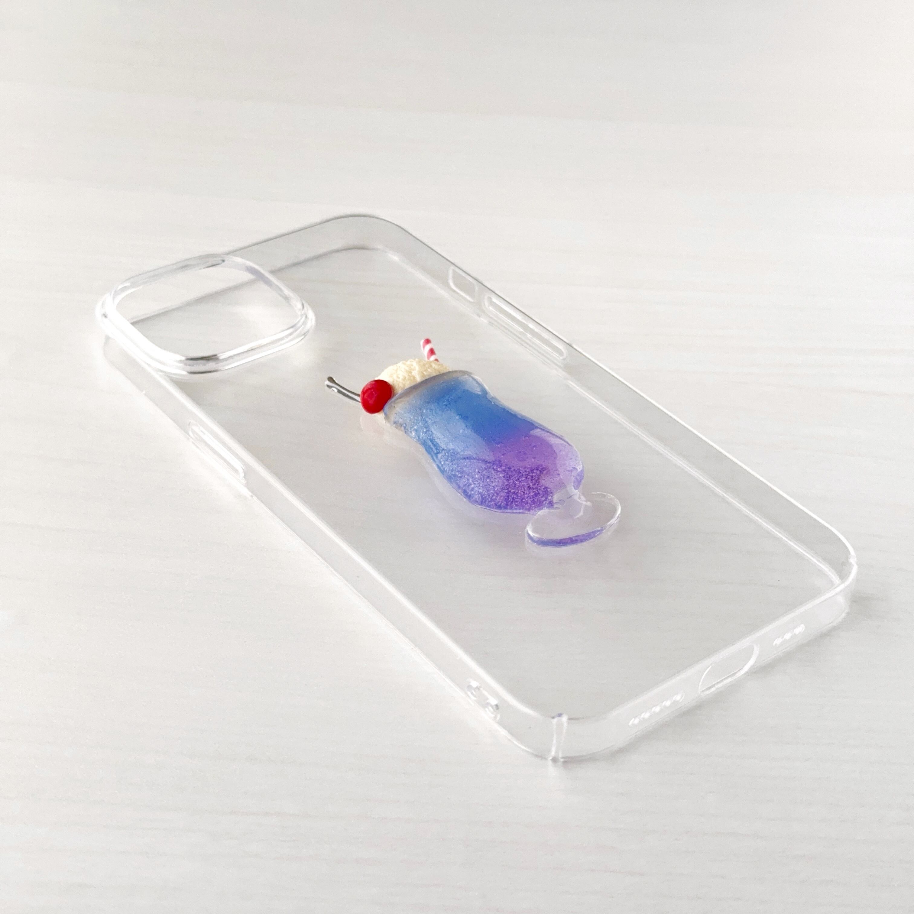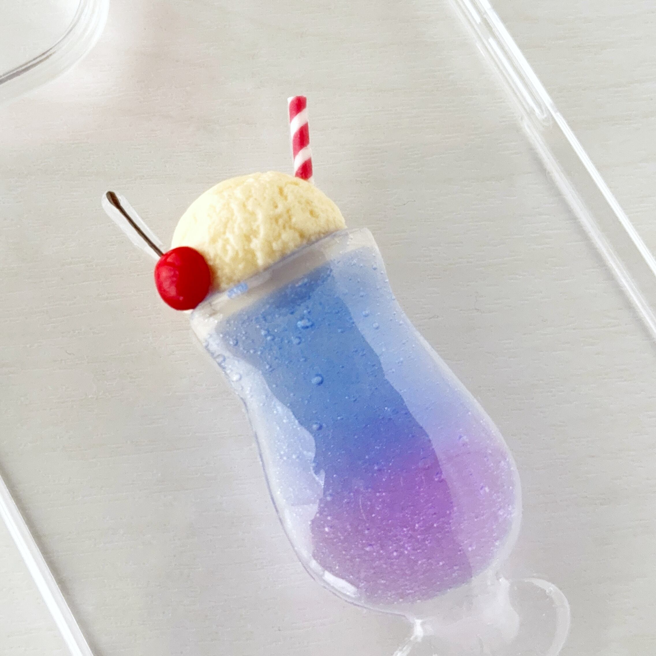 バタフライピーのハーブティーをイメージした、幻想的なクリームソーダのスマホケースです。