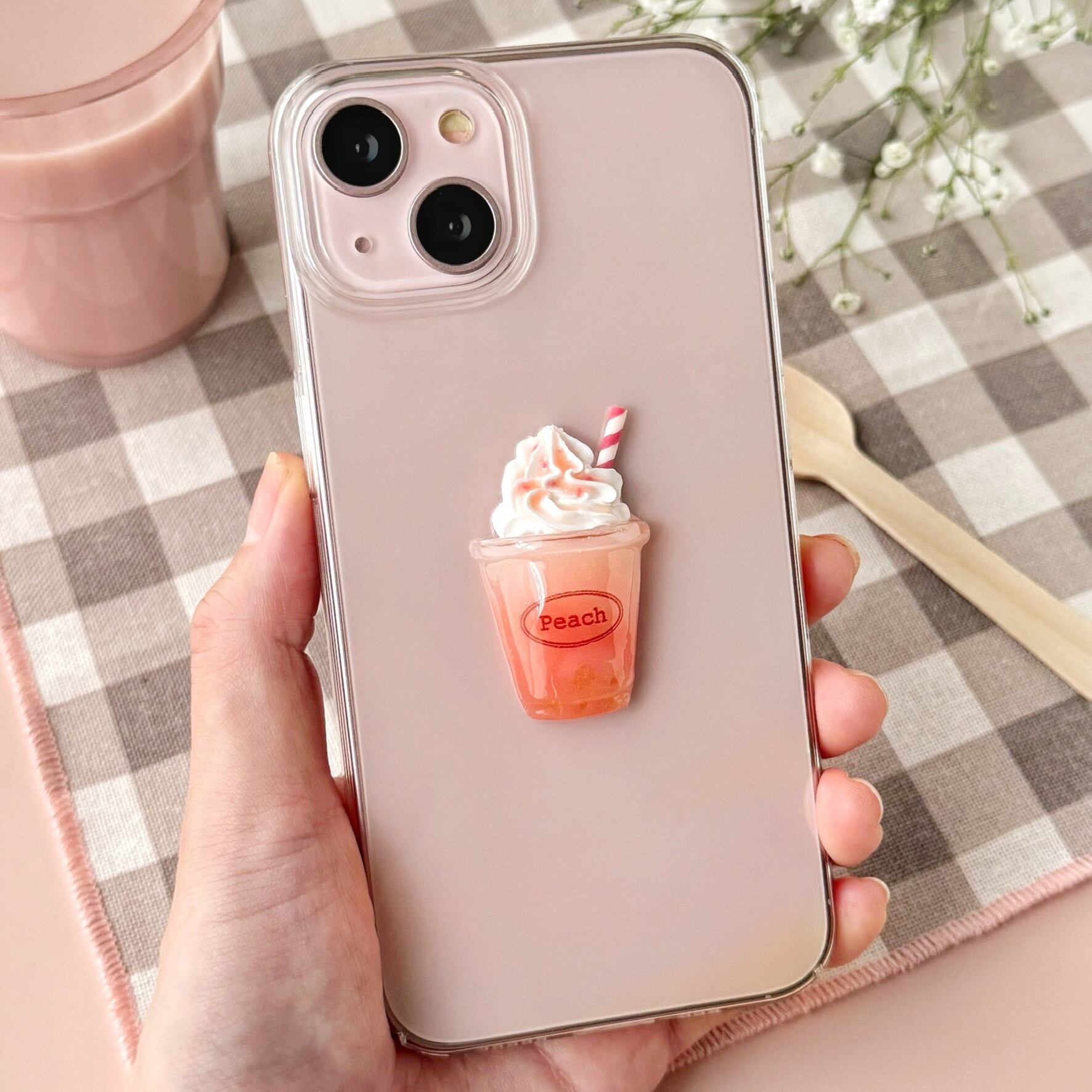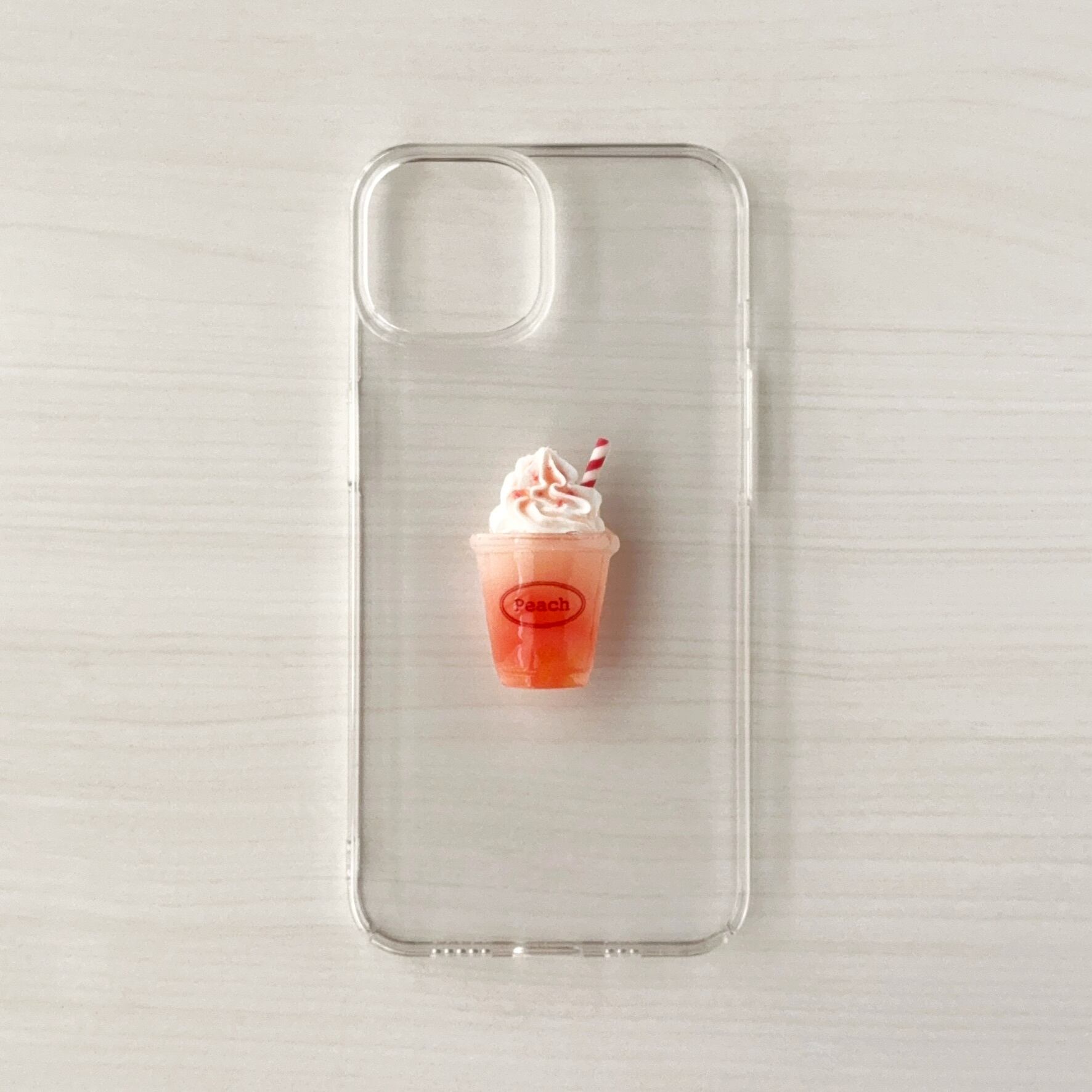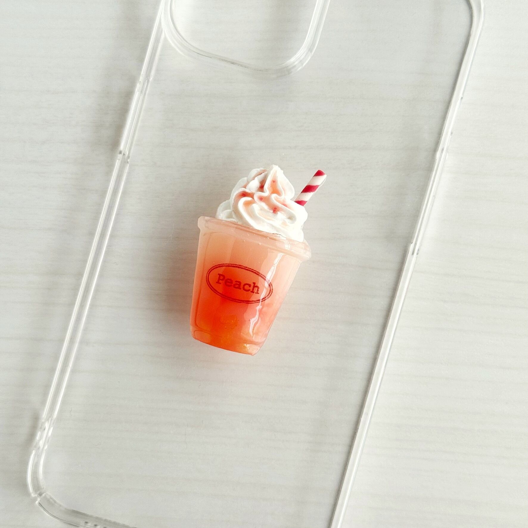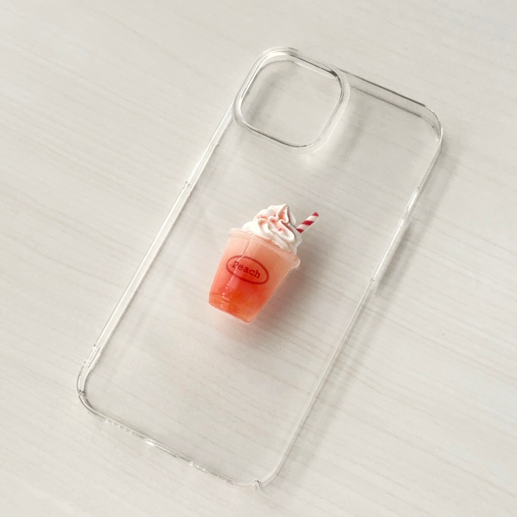【全機種対応】桃フラッペ iPhoneケース Android対応 クリア ピーチ フェイクスイーツ 喫茶店 iPhone17e